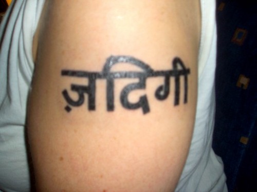 | falsches Hindi-Tattoo Das kann auch passieren, wenn man blind seinem Computer vertraut. Jemand wollte wissen, was "Leben" auf Hindi heißt. Die richtige Antwort lautet ज़िंदगी (zindagī). Doch betreffende Person hatte wohl ein Problem mit ihrem Computer, der die Zeichen falsch darstellte. In der Devanagarischrift schreibt man das "i" nämlich VOR den Konsonanten, obwohl er danach geschrieben wird. Das "i" ist die senkrechte Linie mit dem Bogen auf über der Oberlinie. Der erste Buchstabe ist also das "z" (das Ding mit dem Punkt drunter). Naja, ihr Computer schrieb das "i" jedenfalls hinter das "z", wodurch es so aussieht, als gehöre es zum folgenden Zeichen, also dem "d". Zum Schriftbild gehört auch ein kleiner Punkt oben, der aber hier ganz verschwunden ist... vielleicht wurde er vom falschgesetzten "i" überdeckt? Jedenfalls steht da nun nicht mehr "zindagī", sondern "zadigī" — ein Wort völlig ohne Bedeutung.