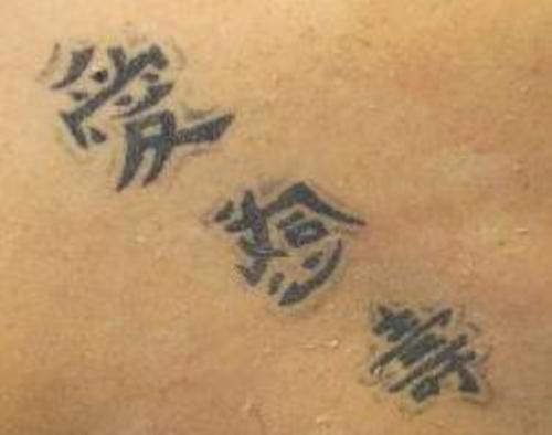 Falsche SchriftzeichenDa es langsam mehr wurden, habe ich mal einen extra Unterordner gemacht. Hier gibt's schlimme Fehler zu sehen, die man sich einhandeln kann, wenn man nicht kontrolliert und blindlings das erstbeste Ergebnis nimmt. Eine Seite, die über solche Fehler aufklärt und diese zeigt, gibt's schon für chinesische und japanische Zeichen (nicht nur, aber hauptsächlich Tattoos). Ich sammle hier einfach mal ein paar Tätowierungen in fremden Sprachen... teilweise selbst fotografiert, teilweise irgendwo aus dem Internet... hoffe, das schreckt einige ab.