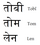 | "Tobi", "Tom" und "Len" auf Hindi Wie gesagt, diese 3 Namen auf Hindi. Mehr zu sagen ist da eigentlich nicht. Alle Angaben sind wie immer ohne Gew |
