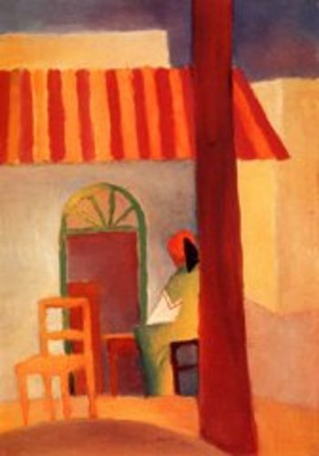 Der deutscher Maler August Macke wurde am 3. 1. 1887 in Meschede, Westfalen geboren. Er fiel als Soldat am 26. 9. 1914 in der Champagne. Als Schüler von L. Corinth wurde Macke entscheidend durch den Stil der Künstler des Blauen Reiters angeregt. Später beeinflusste ihn vor allem das Schaffen von R. Delaunay und der Futurismus. Zusammen mit Paul Klee und L. Moilliet unternahm Macke 1914 eine Tunis-Reise. Macke schilderte in leuchtenden, farbkräftigen Bildern eine zart empfundene, heiter gestimmte Welt und gelangte in den letzten Lebensjahren zu einem stark abstrahierenden Stil. |