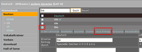 Ausserdem gibt es unter "Vokabeltrainer" diverse Möglichkeiten neue Einträge zu erstellen.