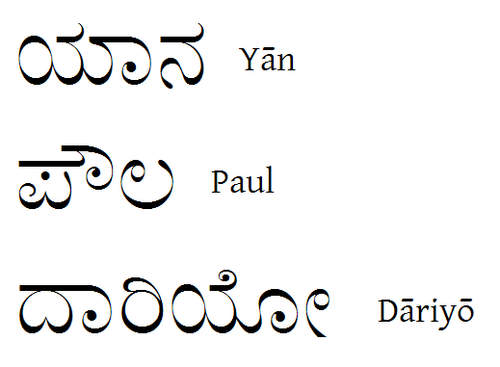 Ich rate noch einmal davon ab, sich Namen ohne nachzudenken irgendwo hintättowieren zu lassen, was dabei rauskommen kann, sieht man in meinem Tattoofotoordner... |  | Jan, Paul und Dario auf Kannada Ich habe hier die 3 Namen Jan, Paul und Dario auf Kannada geschrieben, diese Sprache spricht man in S |
