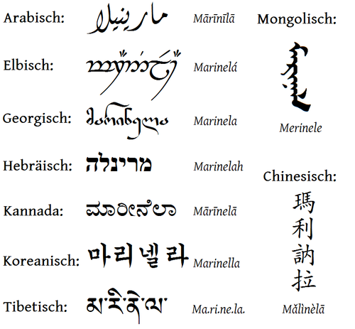 | Marinela auf Arabisch, Elbisch, Georgisch, Hebr Hier eine selbst ausgesuchte Auswahl an Schriftsystemen f |