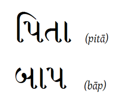 | "Vater" und "Papa" auf Gujarati Das hier sind die W |