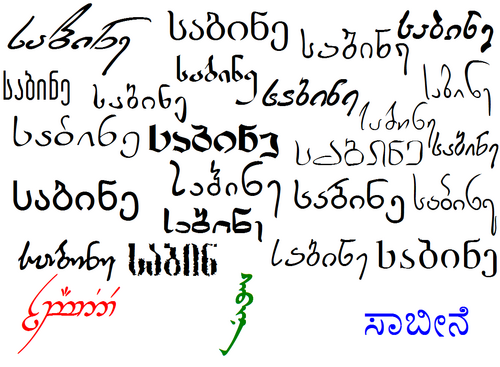 | "Sabine" auf Georgisch, Elbisch, Mongolisch und Kannada Endlich mal Georgisch. Ich hab so viele tolle georgische Schriftarten, das hier (das schwarze) sind die besten davon. Die Handschriftlichen find ich sehr sch |