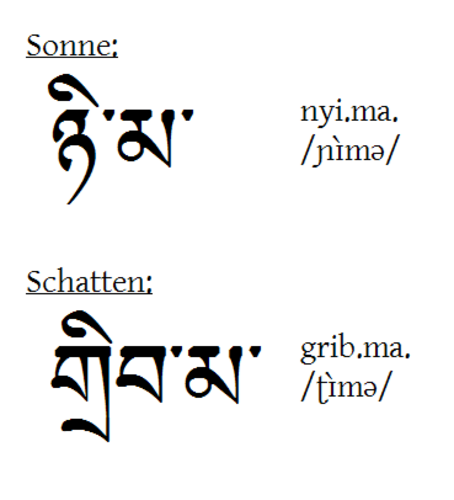 | "Sonne" und "Schatten" auf Tibetisch Warum eigentlich immer Tibetisch? Na wenigstens sind's hier keine albernen Namen. Erkl |