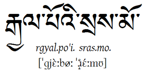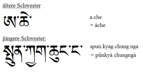 | Nichte auf Tibetisch Dieses Wort bedeutet Nichte. Es wird in etwa "Tsammo" ausgesprochen, im hohen Ton. |