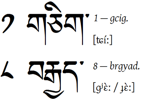 | "Eins" und "acht" auf Tibetisch Und hier zwei Zahlen, ausgeschrieben... eins und acht. Alles wie immer, ist eigentlich selbsterkl |