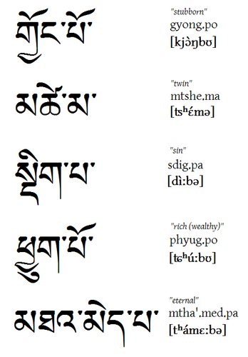 | "Stur", "Zwilling", "S Wiedermal Tibetisch. Links die Schreibweise, rechts die |