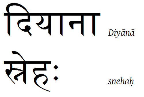 | "Diana" und "Liebe" auf Sanskrit Hier ein Name und ein Wort, beides von der gleichen Person gew |